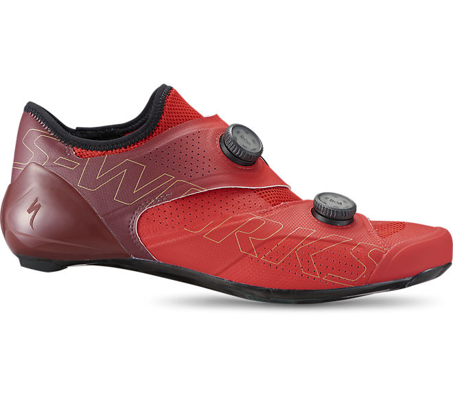 When the moment comes for an attack in the hills, a long solo move, or a full gas sprint for the line, every watt counts, which is why we designed the S-Works Ares to be the most efficient and powerful performance shoe ever made. We combined decades of Body Geometry development with obsessive innovation working with the world’s best athletes to completely reimagine the race shoe. An entirely new, patent-pending closure system, Dyneema®-reinforced toungless sock, and ultra-stiff FACT Powerline™ carbon outsole eliminate foot roll, reduce pressure on tendons, and transfer every ounce of power to the pedals for unprecedented performance and comfort. It’s 1% faster than any shoe we’ve ever made, and at the finish line, that’s all that matters.